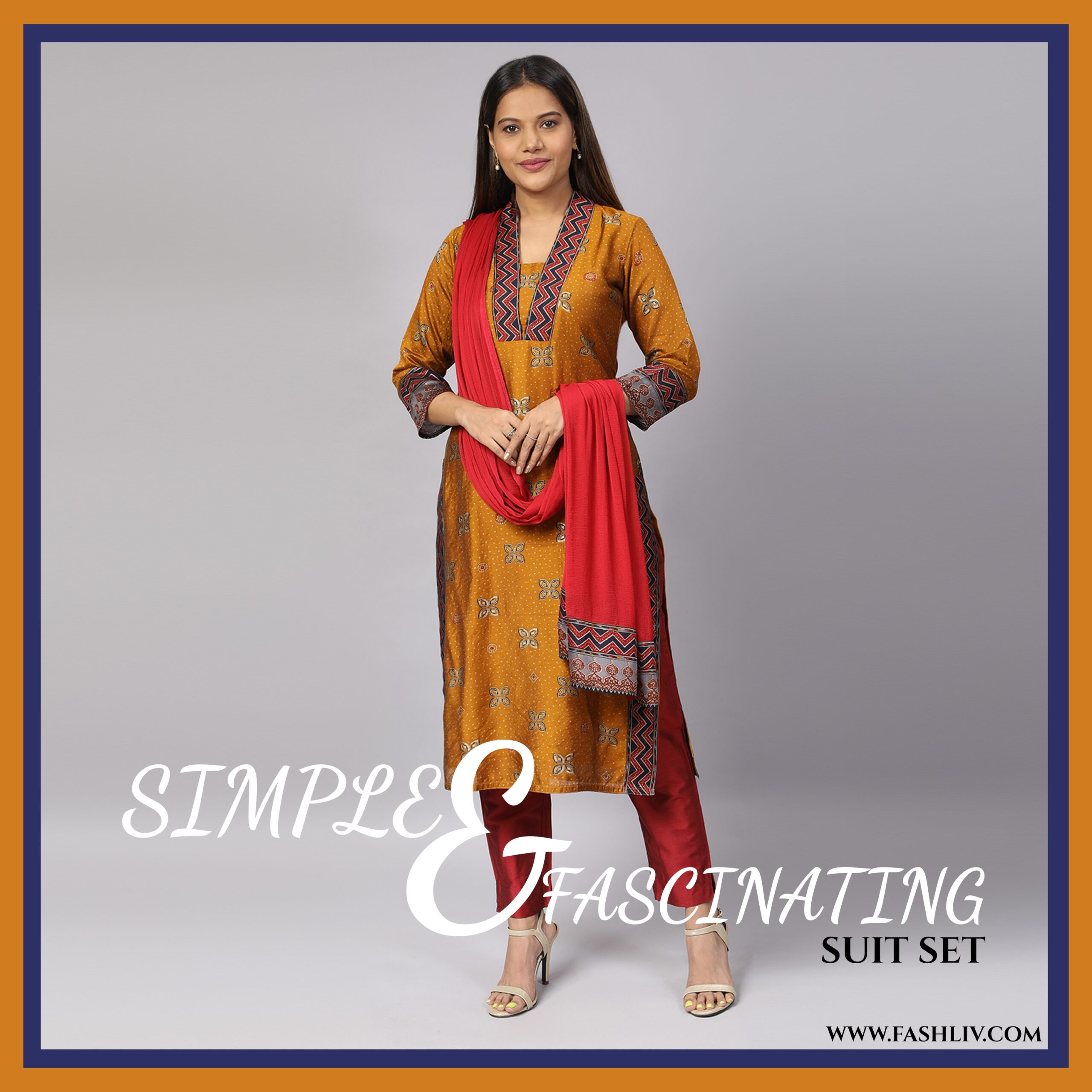 Ethnic Mustard With Printed Motifs Straight Suit Set